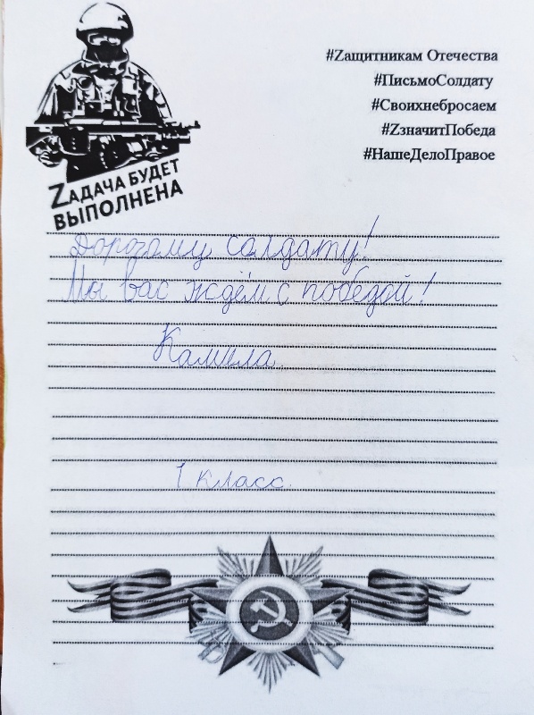 • Первоклассники в акции "Письмо солдату"